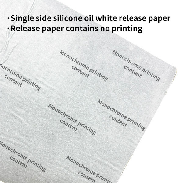 1. adhesivo amortiguador + papel de salida blanco de silicona de una sola cara impreso con aceite (incluida la impresión de papel de salida).