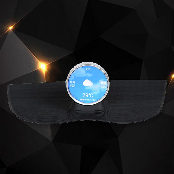 3.Se conecta a través de una aplicación móvil, ofreciendo diversas pantallas de interfaz de usuario, incluyendo pronósticos del tiempo, una brújula y una interfaz de álbum de fotos personalizable.