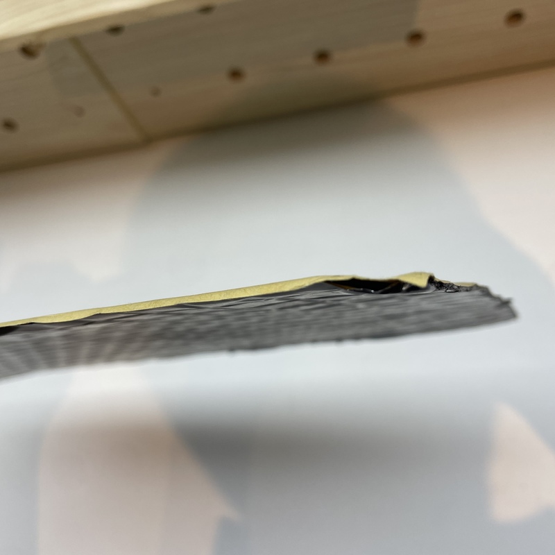1. Grosor 2,5 mm / relieve de lámina de aluminio romboidal en la superficie + adhesivo amortiguador respetuoso con el medio ambiente + papel de liberación kraft de aceite de silicona de una sola cara (incluida la impresión del papel de liberación)