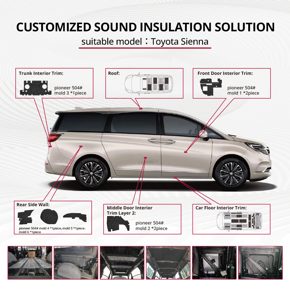 | Resaltar: | Full-Car Noise Reduction Toyota Sienna sound insulation,Premium Pioneer Materials Sienna car quiet kit,Perfect Fit for Sienna Customized sound insulation solution |